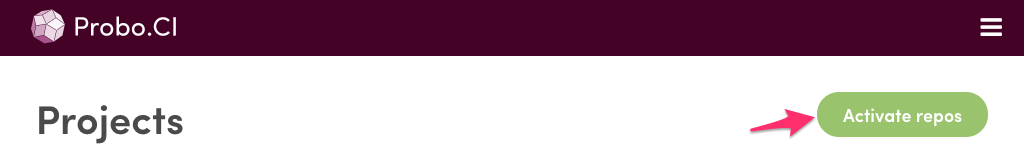 Once you have successfully logged into the Probo app, you will need to activate the repository you want to work on through the Probo app user interface. Below is a screenshot of the big green button labeled “Activate repos.” Click this button to view the repos that are available to sync to your Probo account.