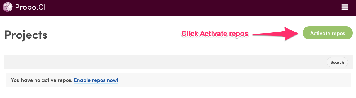 Now you can start activating repositories within your Probo Organization.