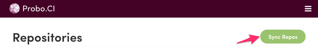 Once you have successfully logged into the Probo app, you will need to activate the repository you want to work on through the Probo app user interface. Below is a screenshot of the big green button labeled “Activate repos.” Click this button to view the repos that are available to sync to your Probo account.