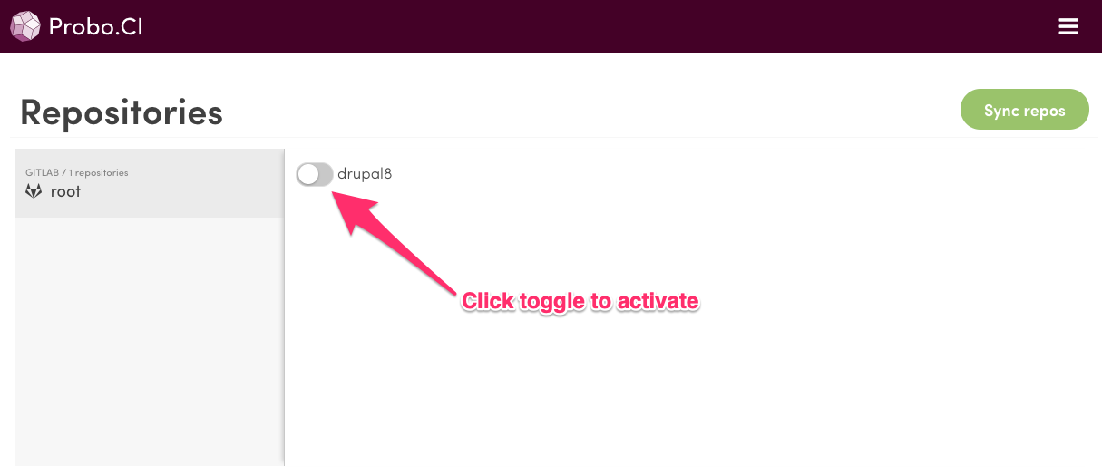 Sync and enable the repositories you want to connect with Probo.